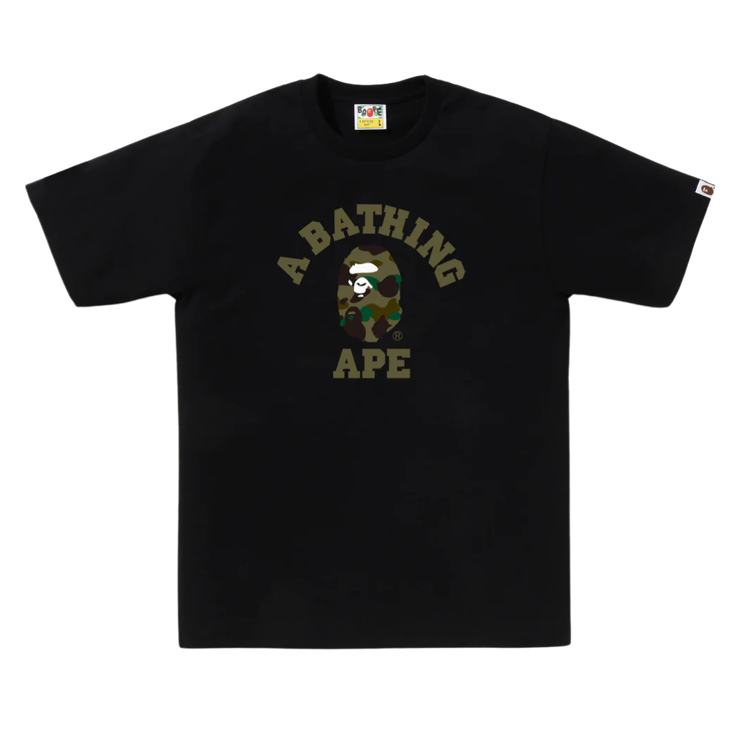 BAPE - CAMISETA 1ST CAMO COLLEGE "PRETO/VERDE" -NOVO-