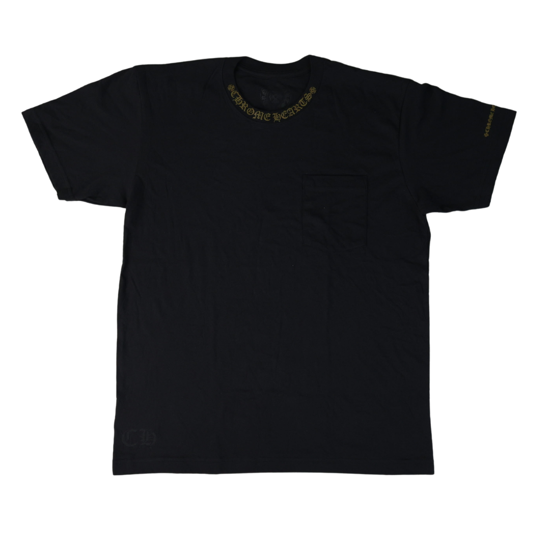 CHROME HEARTS - CAMISETA NECK LOGO POCKET "PRETO/AMARELO" -NOVO-