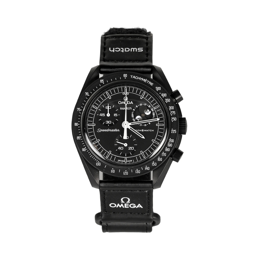 OMEGA X SWATCH- RELÓGIO BIOCERAMIC MISSION TO MOONPHASE SNOOPY "PRETO" -NOVO-